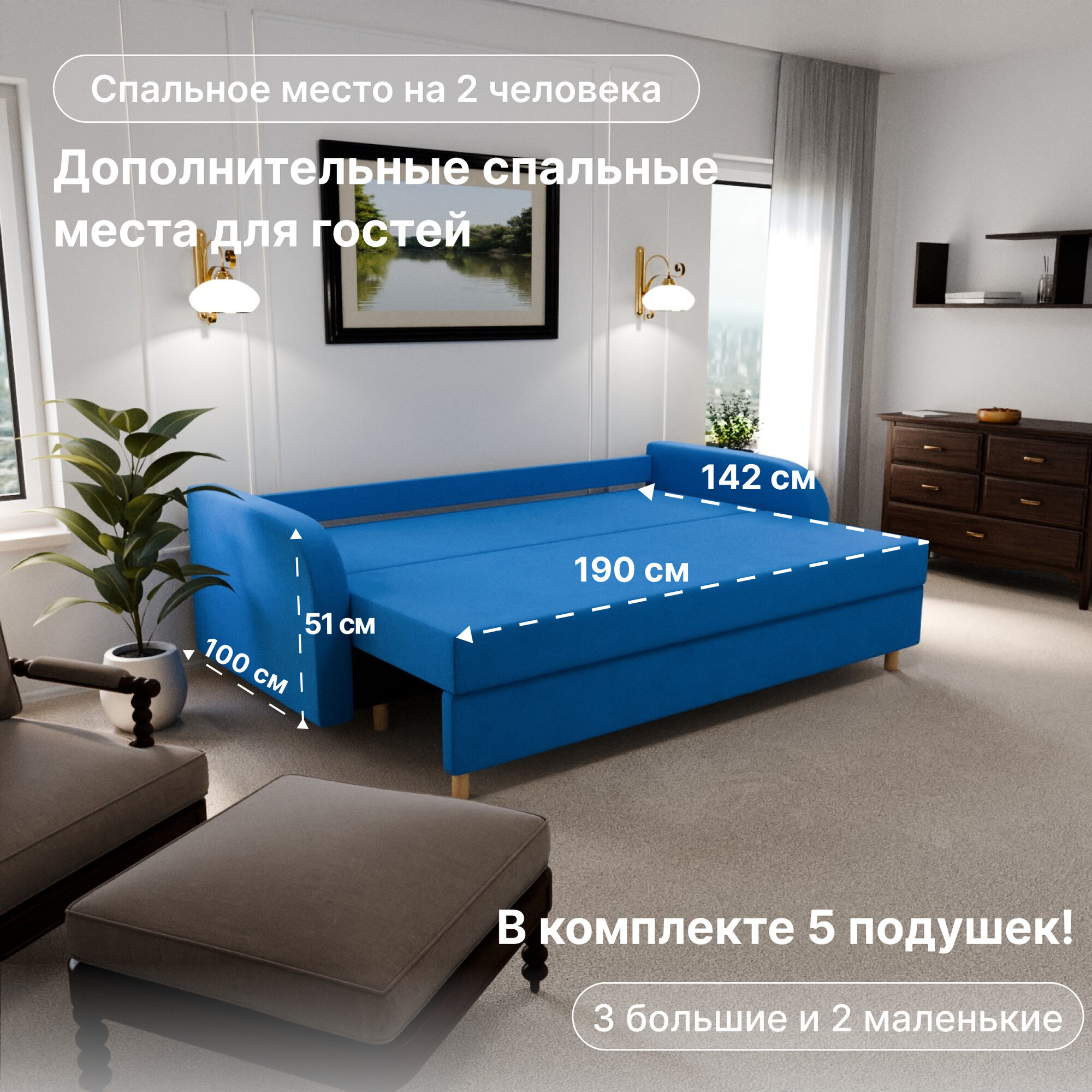Отзывы на Диван, диван-кровать, диван раскладной "Генри" НПБ, Велютта люкс 45, размеры 220х80х100, голубой