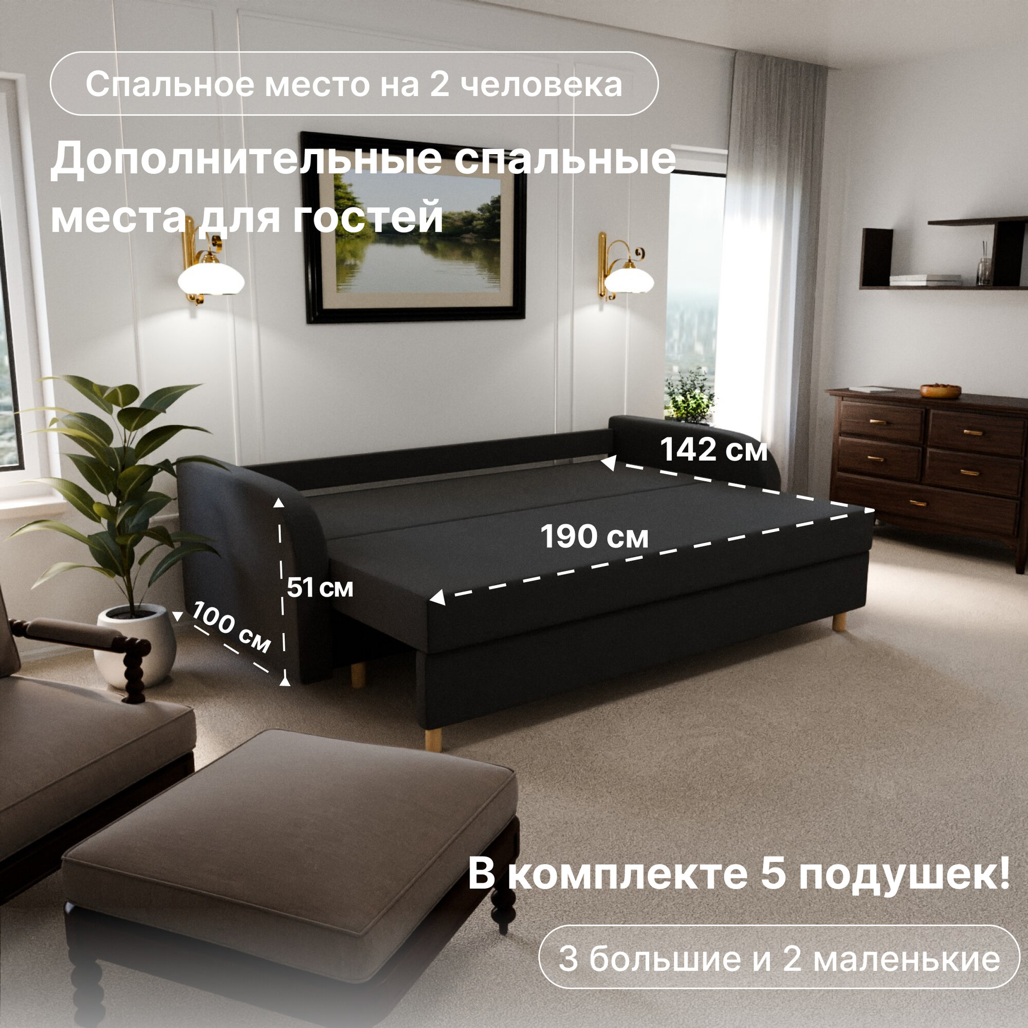 10 цен на Диван, диван-кровать, диван раскладной "Генри" НПБ, Велютта люкс 99, размеры 220х80х100, черный