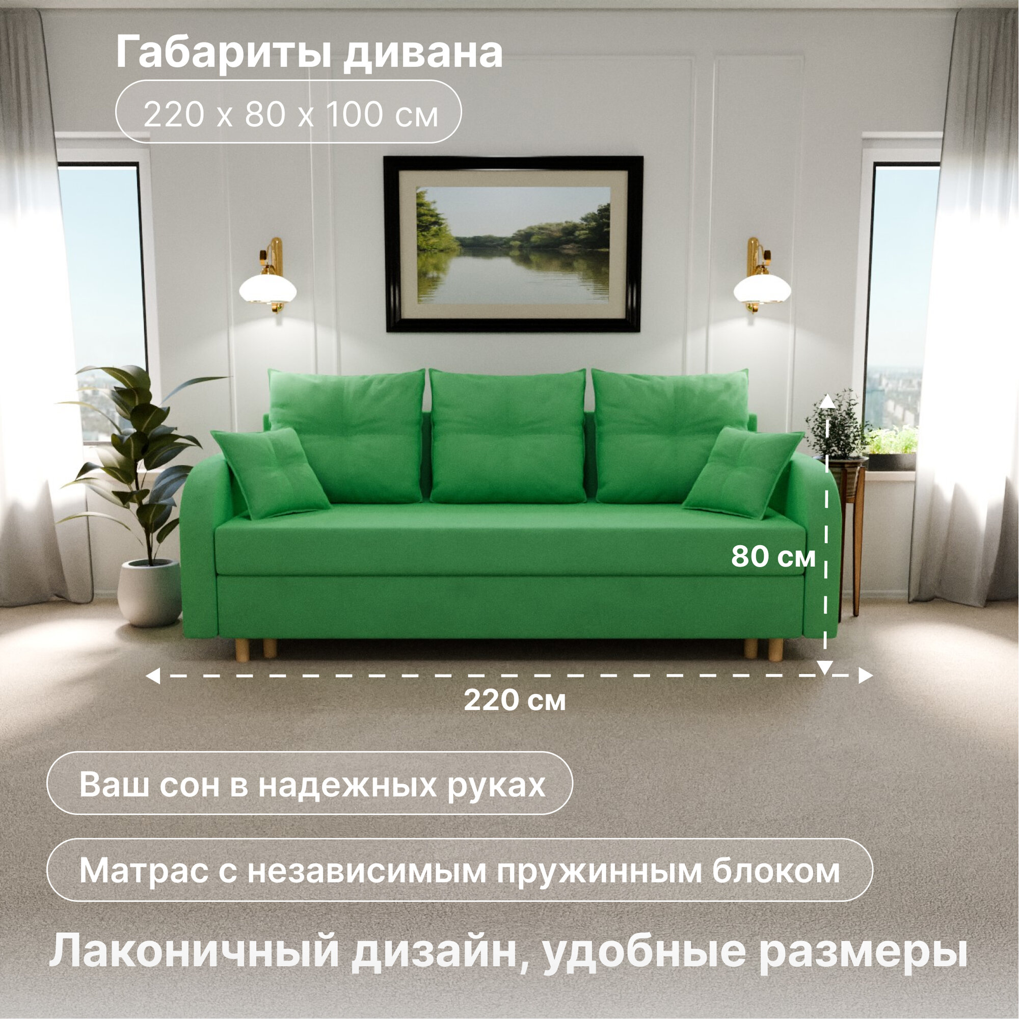 10 цен на Диван, диван-кровать, диван раскладной "Генри" НПБ, Велютта люкс 42, размеры 220х80х100, светло-зеленый