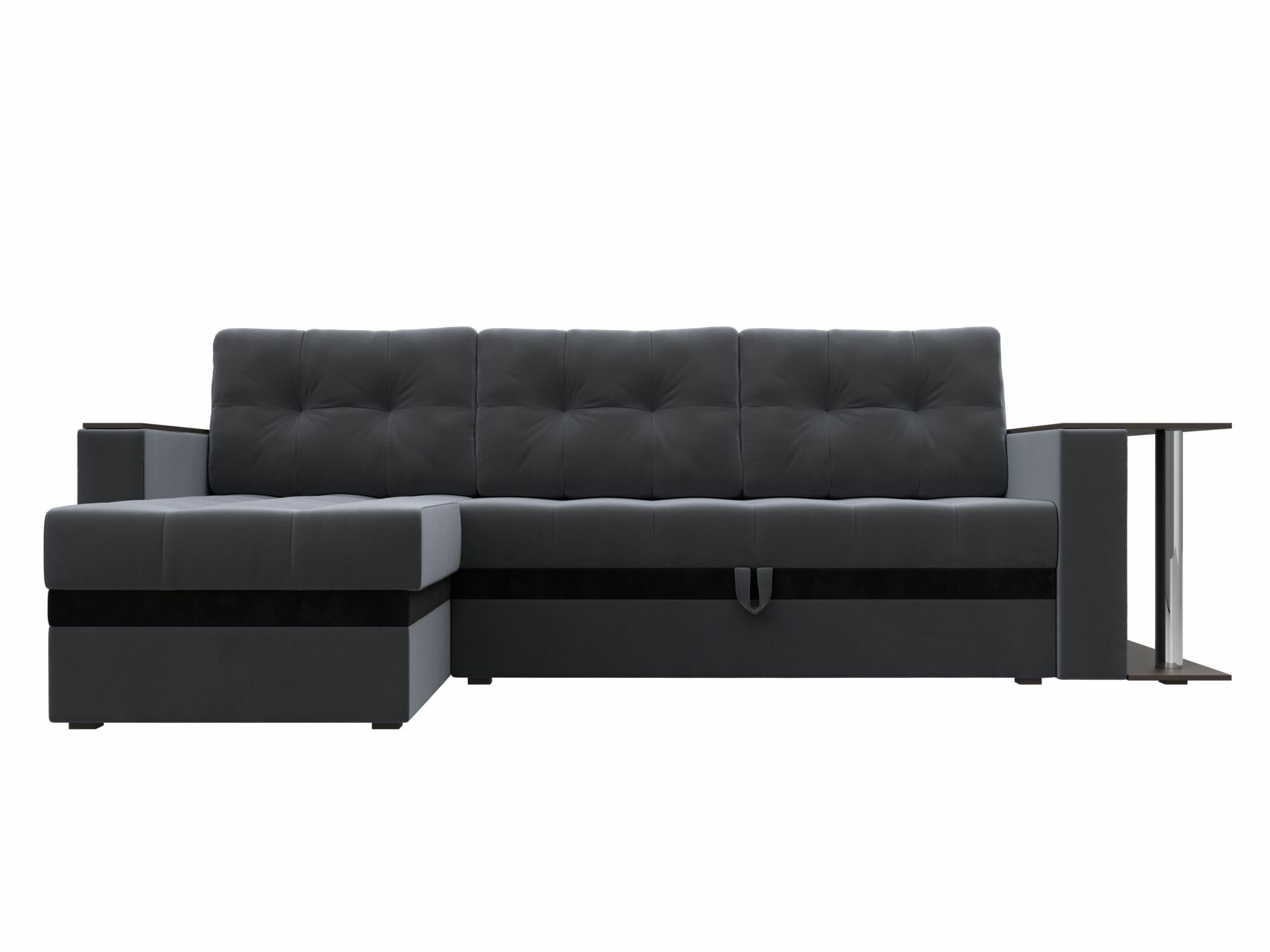 Диван угловой Атланта М левый угол, велюр серый, вставка велюр черный
