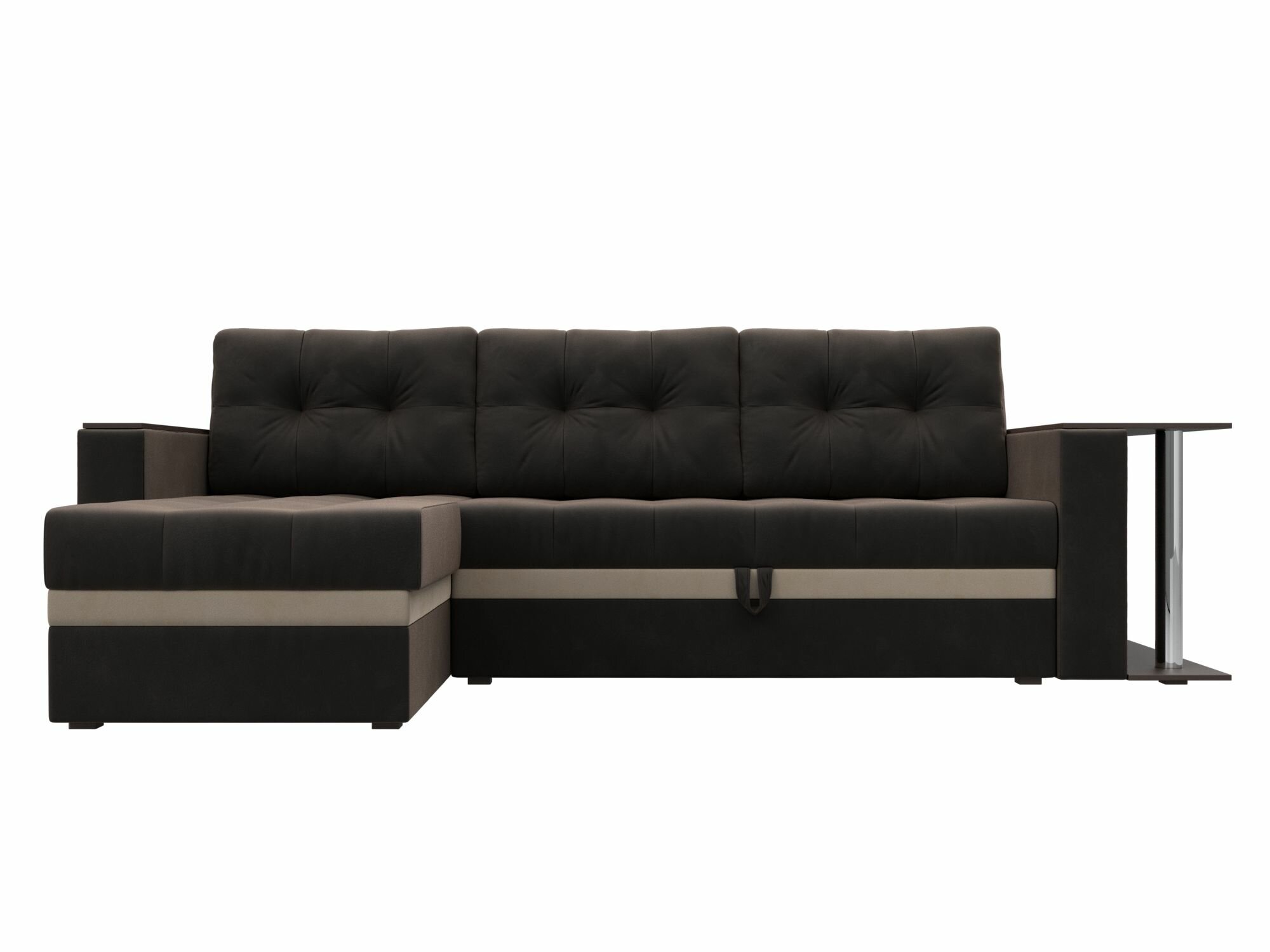 Диван угловой Атланта М левый угол, велюр коричневый, вставка велюр бежевый информация: