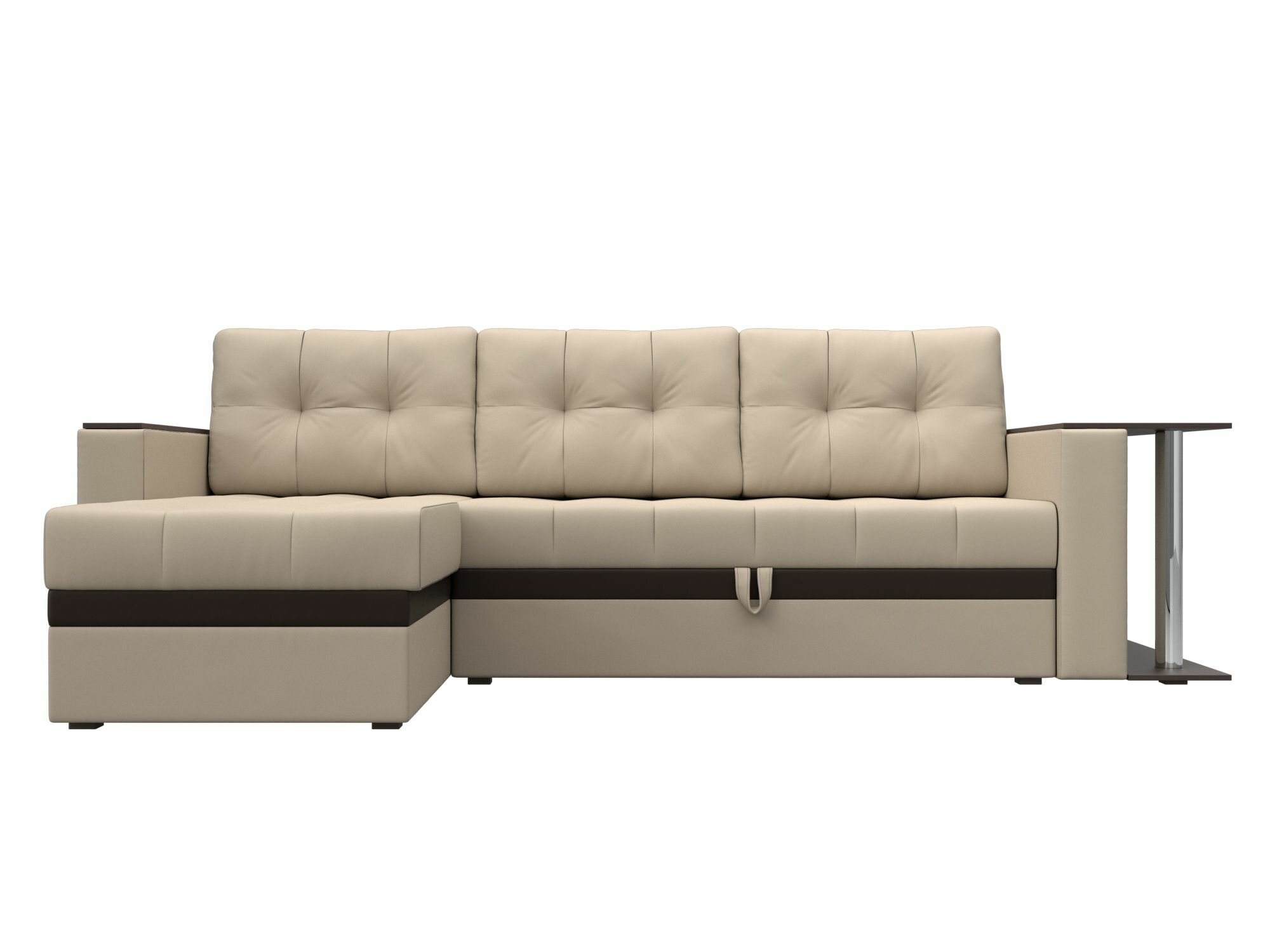Диван угловой Атланта М левый угол, экокожа бежевая, вставка экокожа коричневая информация: