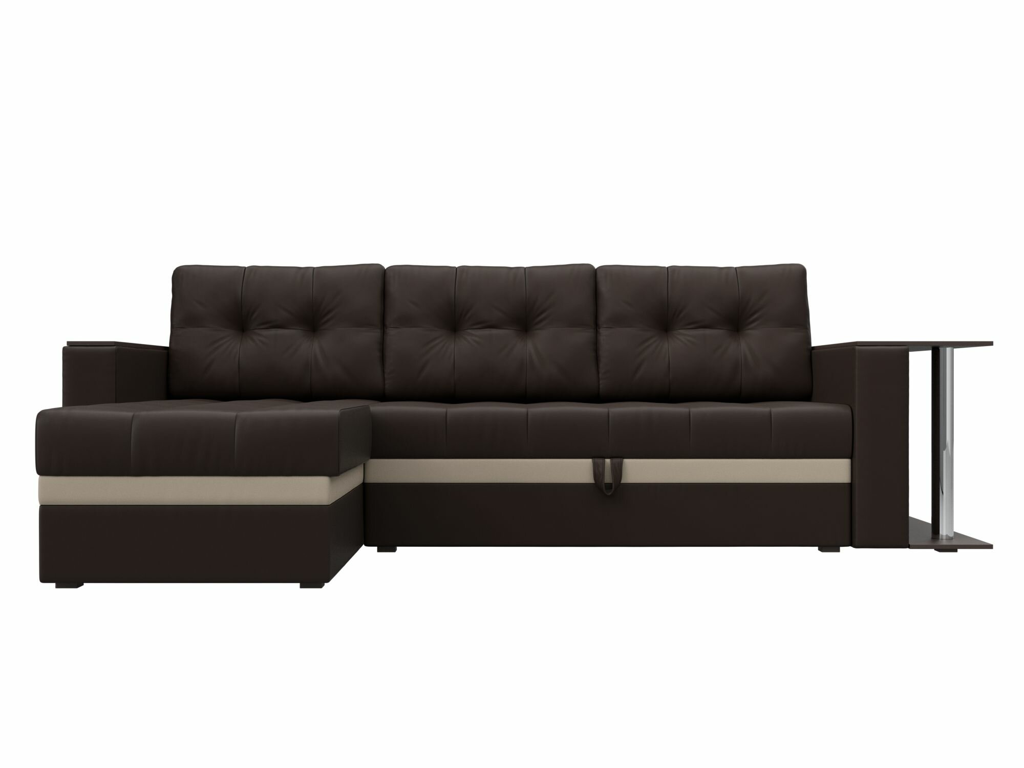 Диван угловой Атланта М левый угол, экокожа коричневая, вставка экокожа бежевая информация: