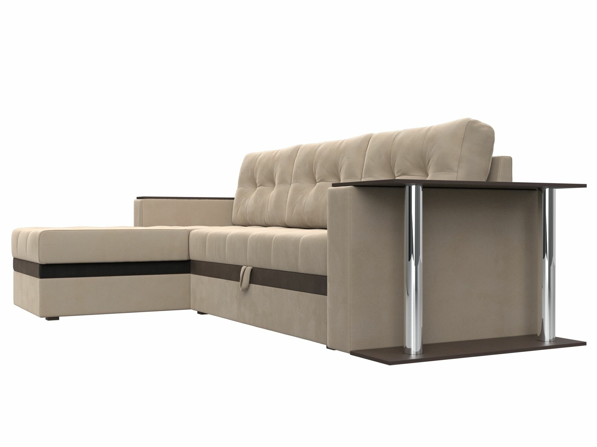 Диван угловой Атланта М левый угол, велюр бежевый, вставка велюр коричневый информация: