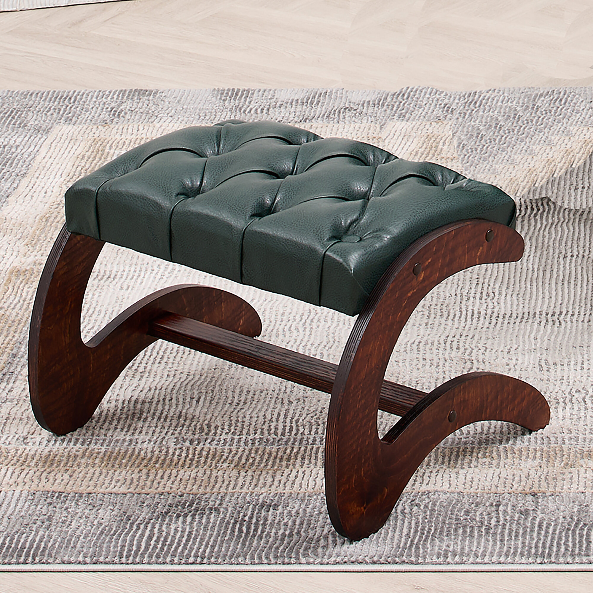 10 цен на Кресло-качалка кожаное с банкеткой и столиком каретная стяжка Шоколад, Античный дуб