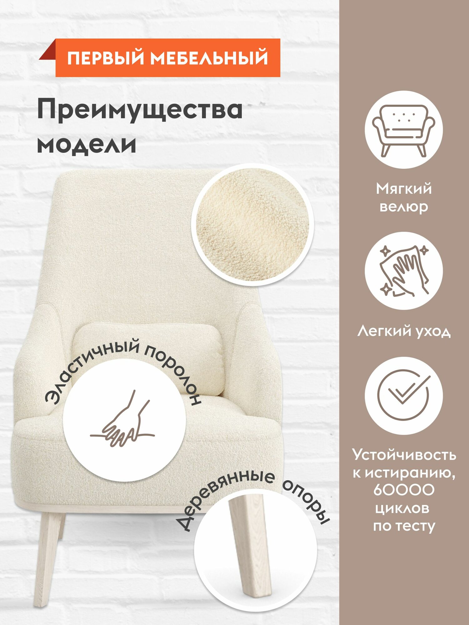 Отзывы на Кресло мягкое Лаурель для отдыха дома с декоративной подушкой, высокие ножки, с высокой спинкой, 67х84х102 см, Крем, мех