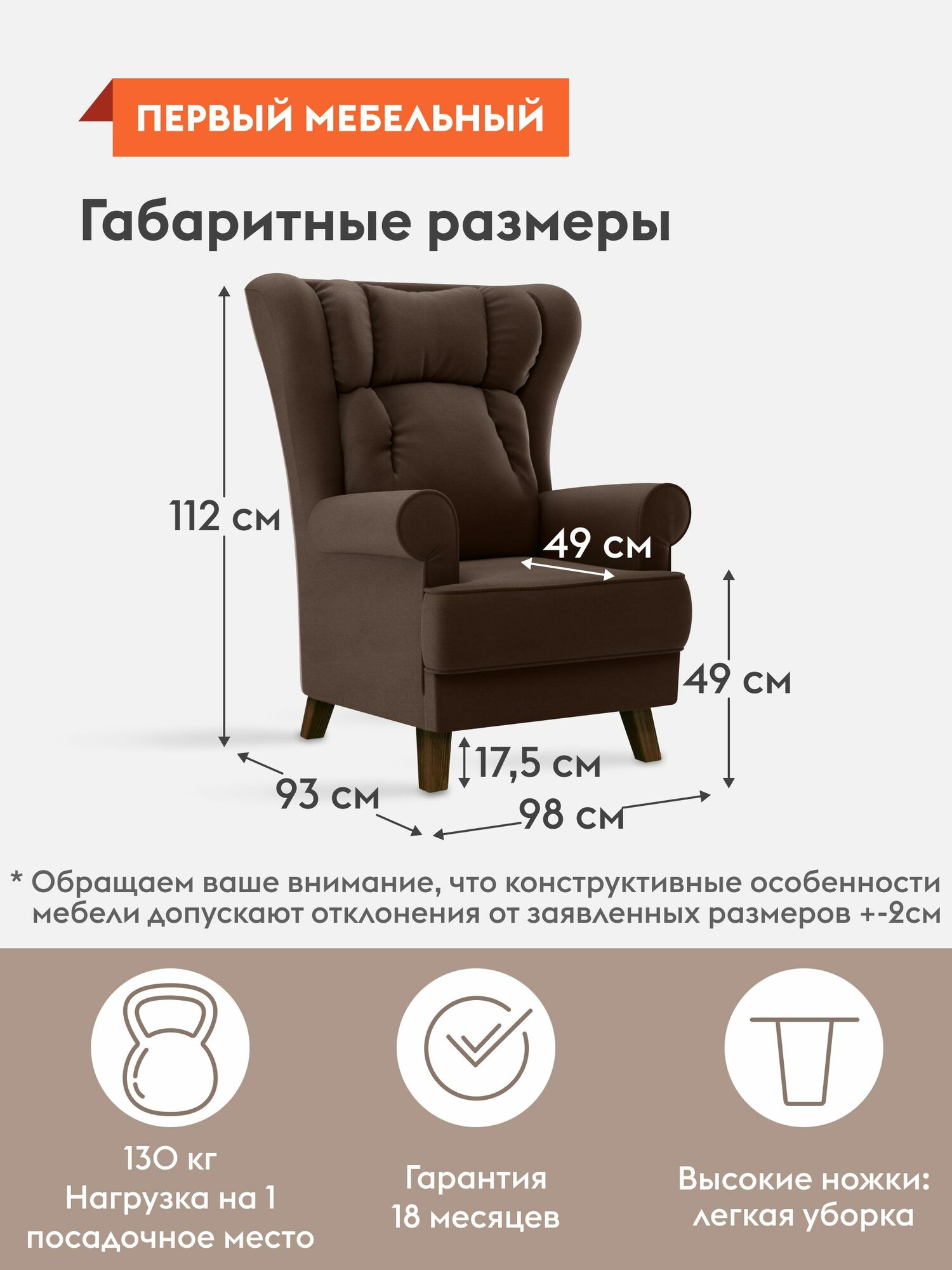 Отзывы на Кресло мягкое Лори для отдыха дома, в гостиную, с высокой спинкой, 98х93х112 см, Ножки массив дерева, орех / Корица, микровелюр
