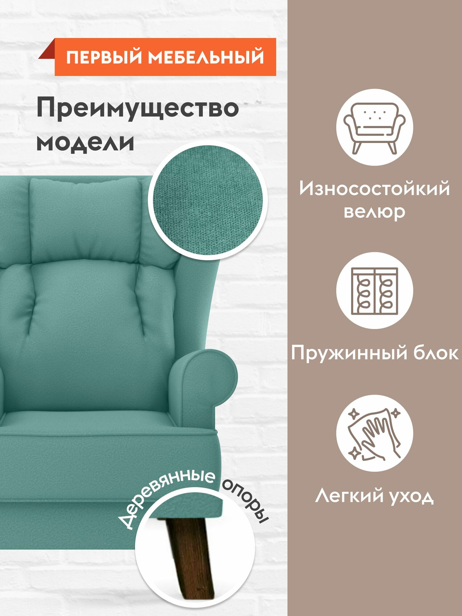 Отзывы на Кресло мягкое Лори для отдыха дома, в гостиную, с высокой спинкой, 98х93х112 см, Ножки массив дерева, орех / Мята, микровелюр