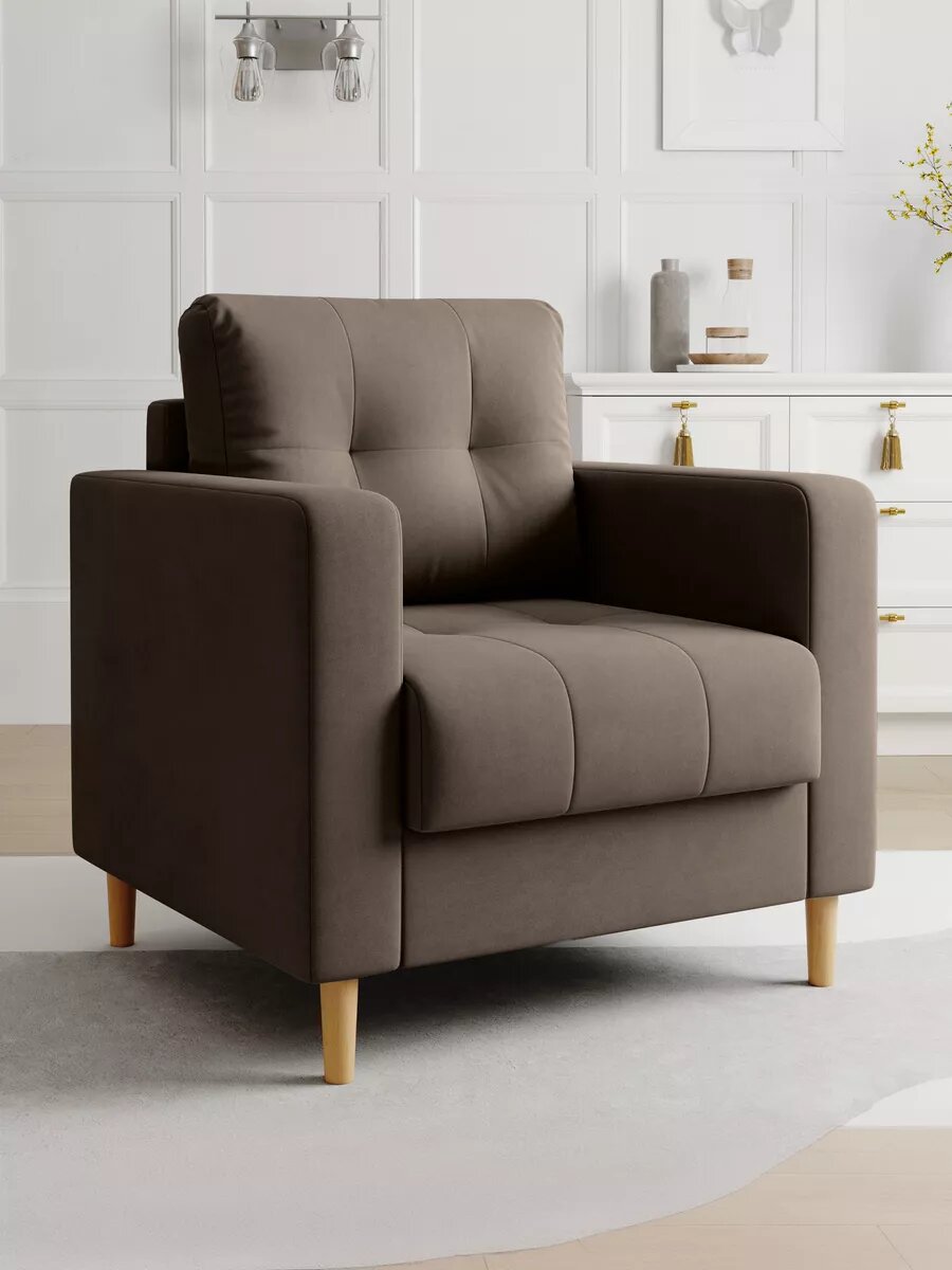 10 цен на Кресло мягкое Руми велюр цвет темно-коричневый с подлокотниками 76х70х86 см