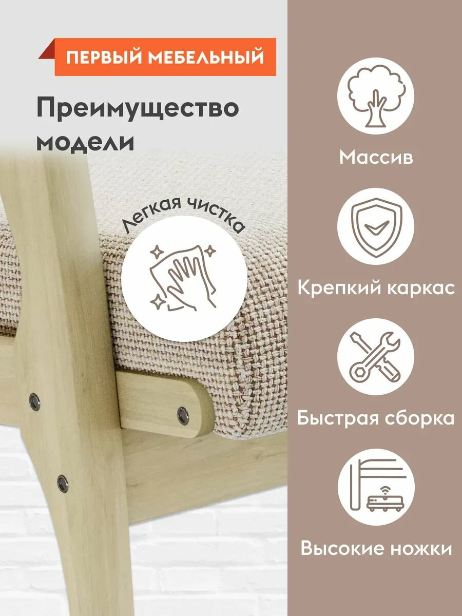 Кресло мягкое Вега для отдыха дома, с подголовником, с высокой спинкой, 63х90х95 см, массив сосны, бук, рогожка, бежевый информация: