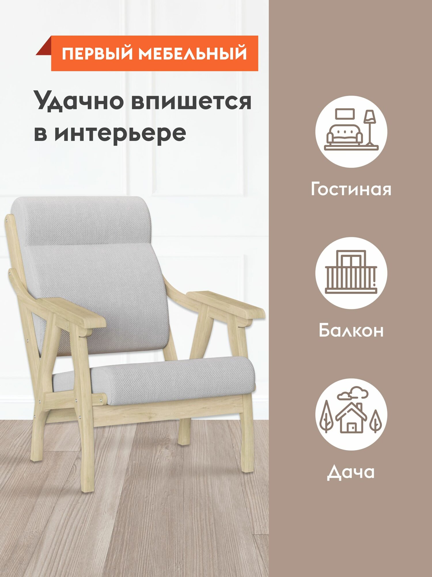 Отзывы на Кресло мягкое Вега для отдыха дома, с подголовником, с высокой спинкой, 63х90х95 см, массив сосны, натуральный лак, рогожка, серый