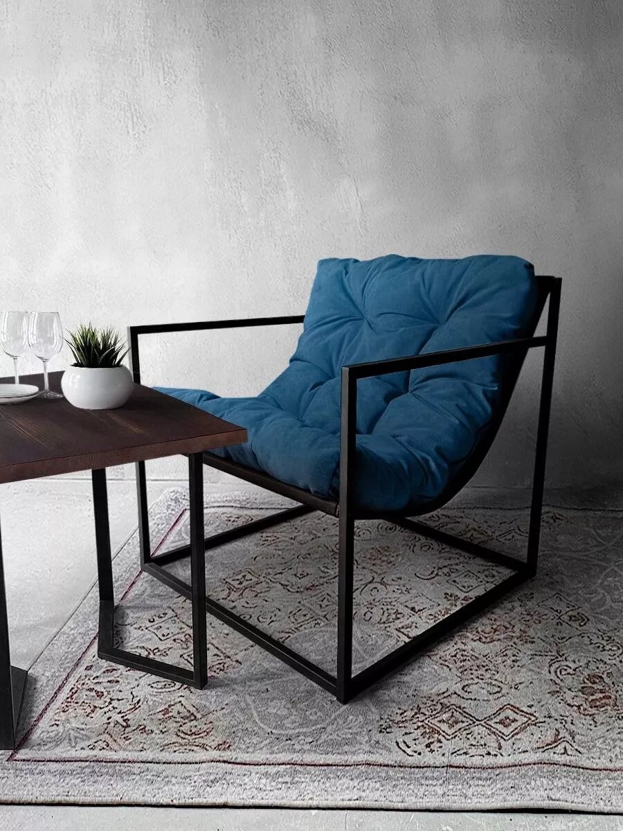 Отзывы на Кресло мягкое удобное для отдыха, уличное, на балкон, веранду, в стиле лофт, минимализм, Комфи + велюр синий