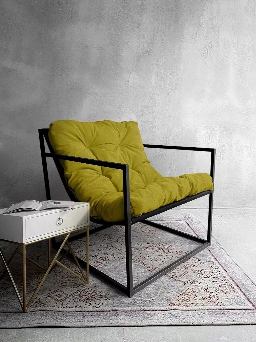 Отзывы на Кресло мягкое удобное для отдыха, уличное, на балкон, веранду, в стиле лофт, минимализм, Комфи + велюр желтый