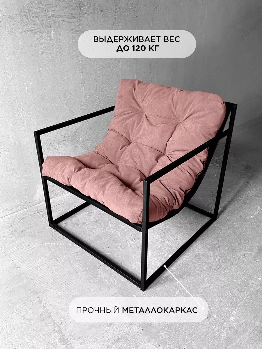Отзывы на Кресло мягкое удобное для отдыха, уличное, на балкон, веранду, в стиле лофт, минимализм, Комфи + велюр розовый