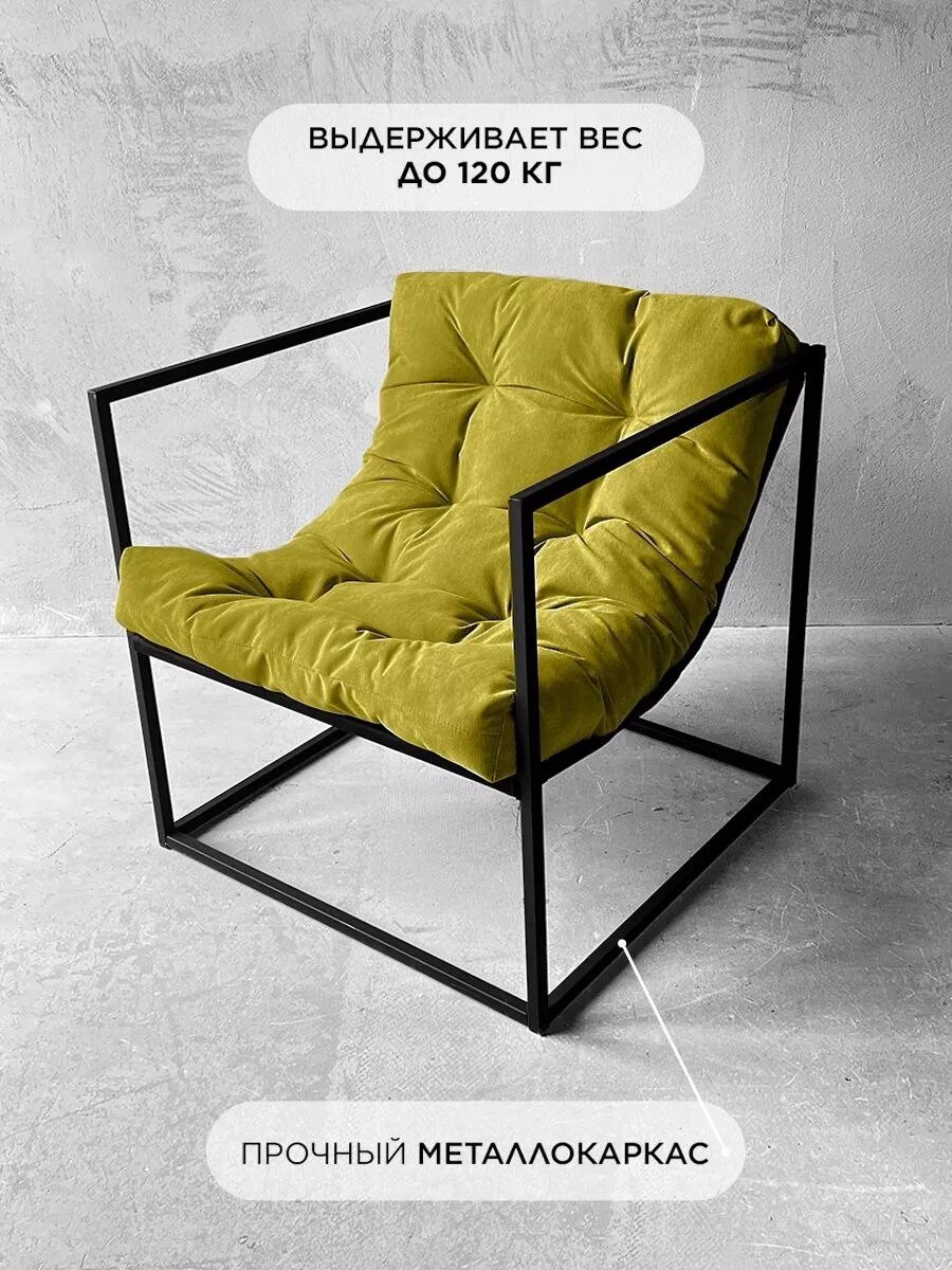Отзывы на Кресло мягкое удобное для отдыха, уличное, на балкон, на веранду, в стиле лофт, минимализм, Лофтовик + желтый велюр