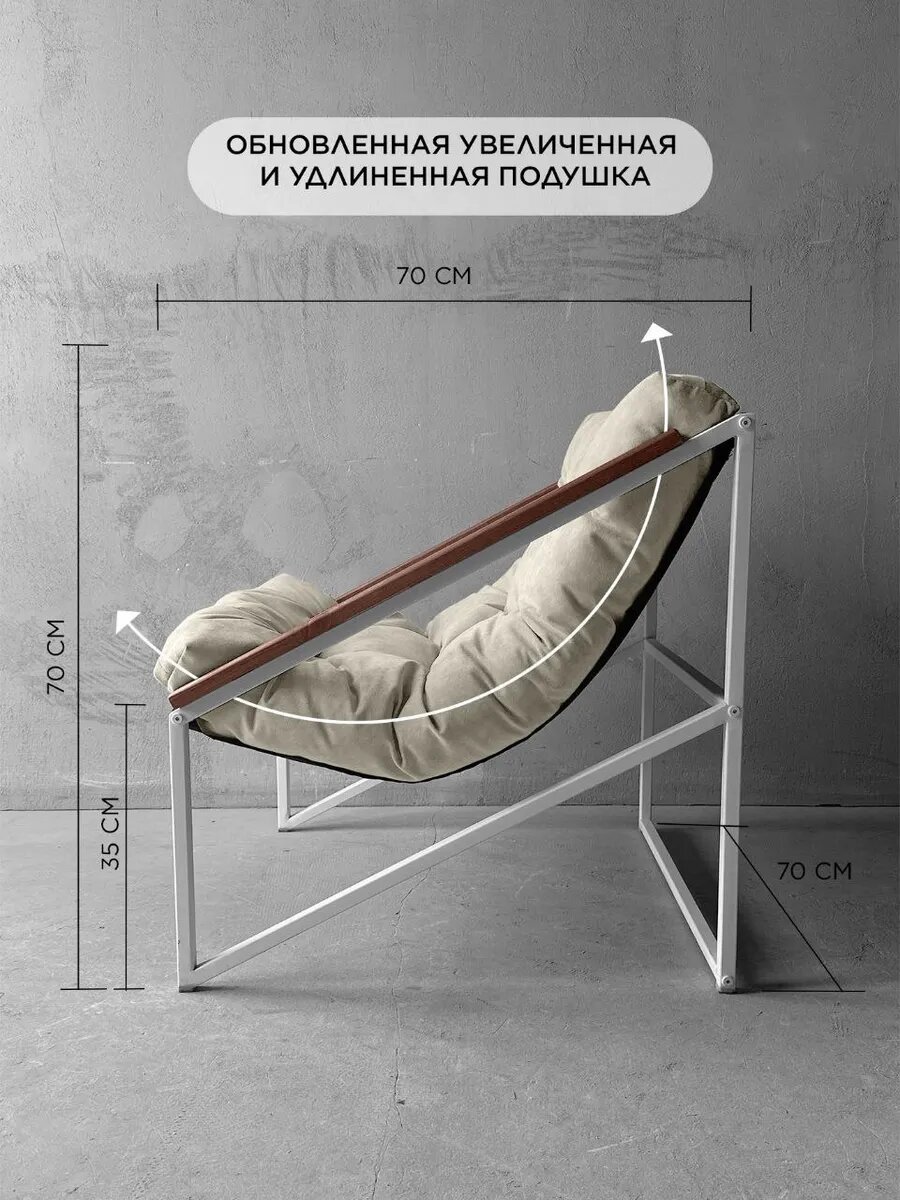 Отзывы на Кресло мягкое удобное для отдыха, уличное, на балкон, на веранду, в стиле лофт, минимализм, Слэш ++ велюр молочный