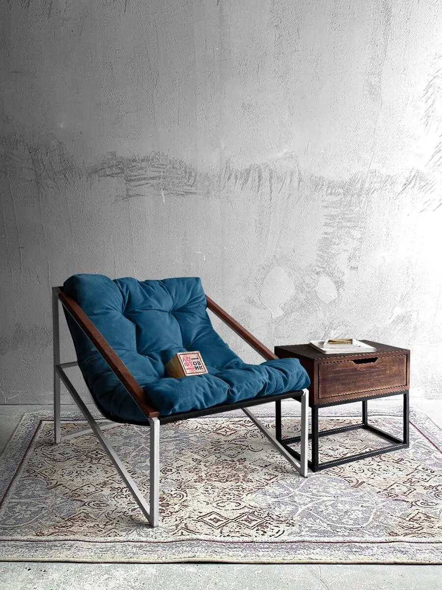 Отзывы на Кресло мягкое удобное для отдыха, уличное, на балкон, на веранду, в стиле лофт, минимализм, Слэш ++ велюр синий