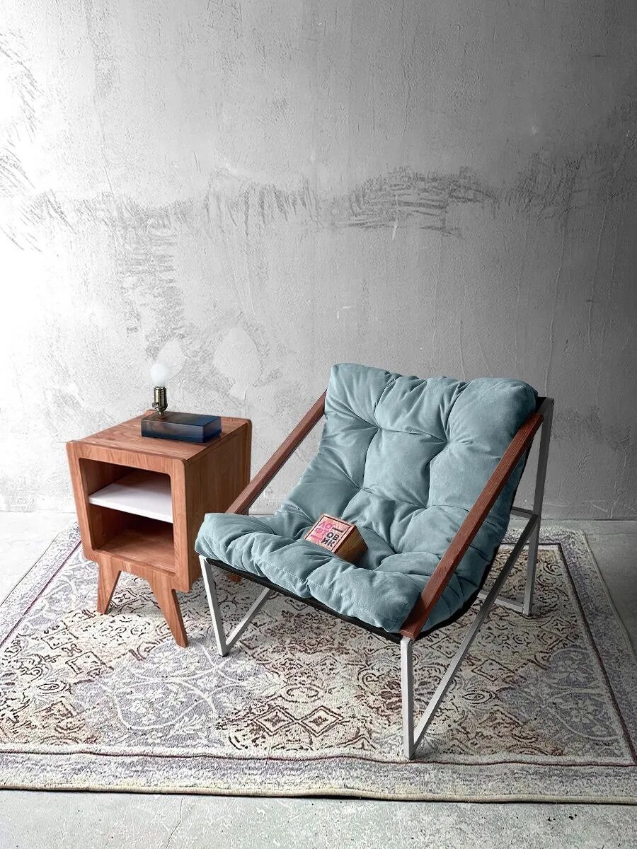 Отзывы на Кресло мягкое удобное для отдыха, уличное, на балкон, на веранду, в стиле лофт, минимализм, Слэш ++ велюр голубой