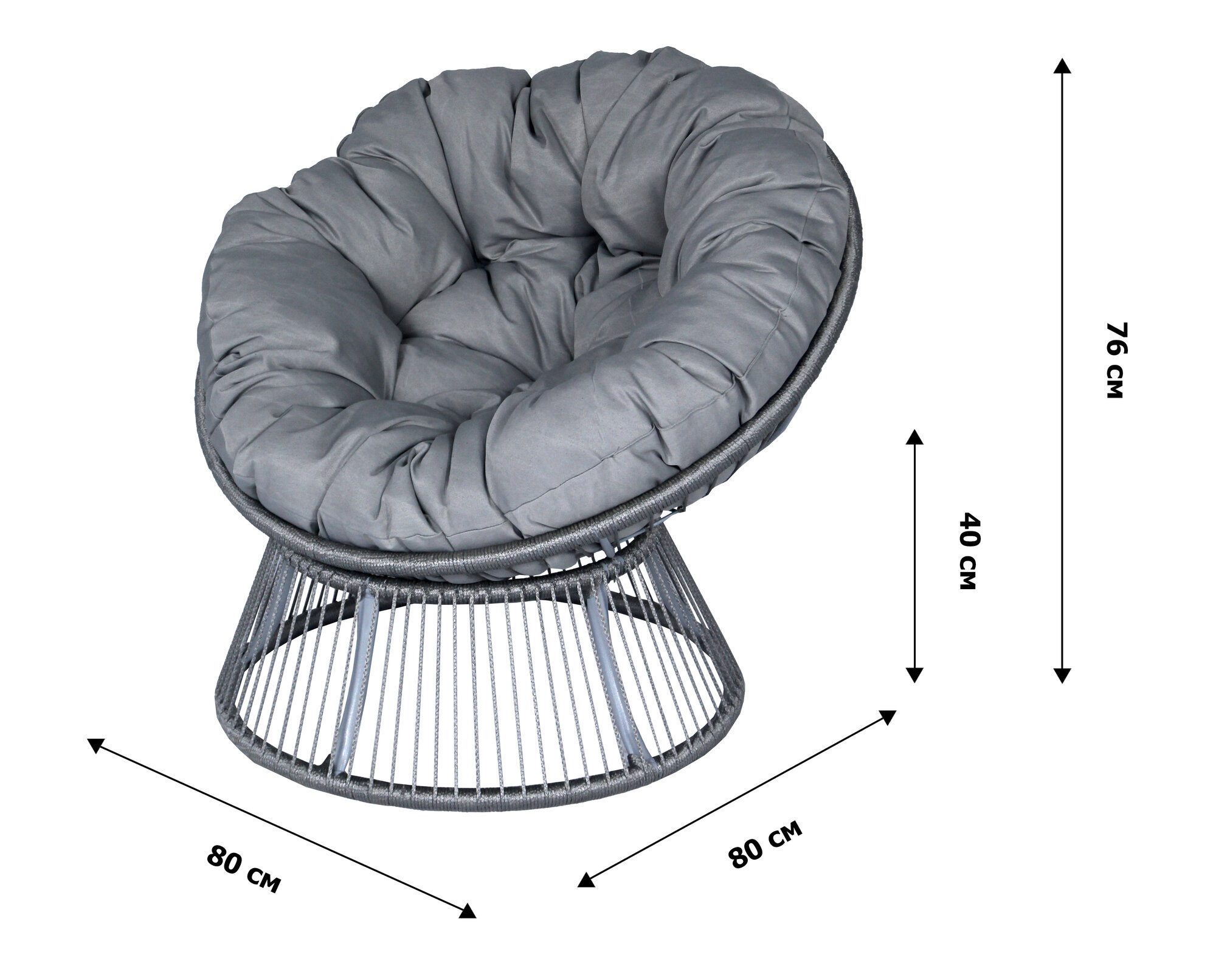Кресло для отдыха Папасан Элис арт. CN2311-MT 1уп, шнур мебельный (серый, подушка серая Tesla smoke) (М) информация: