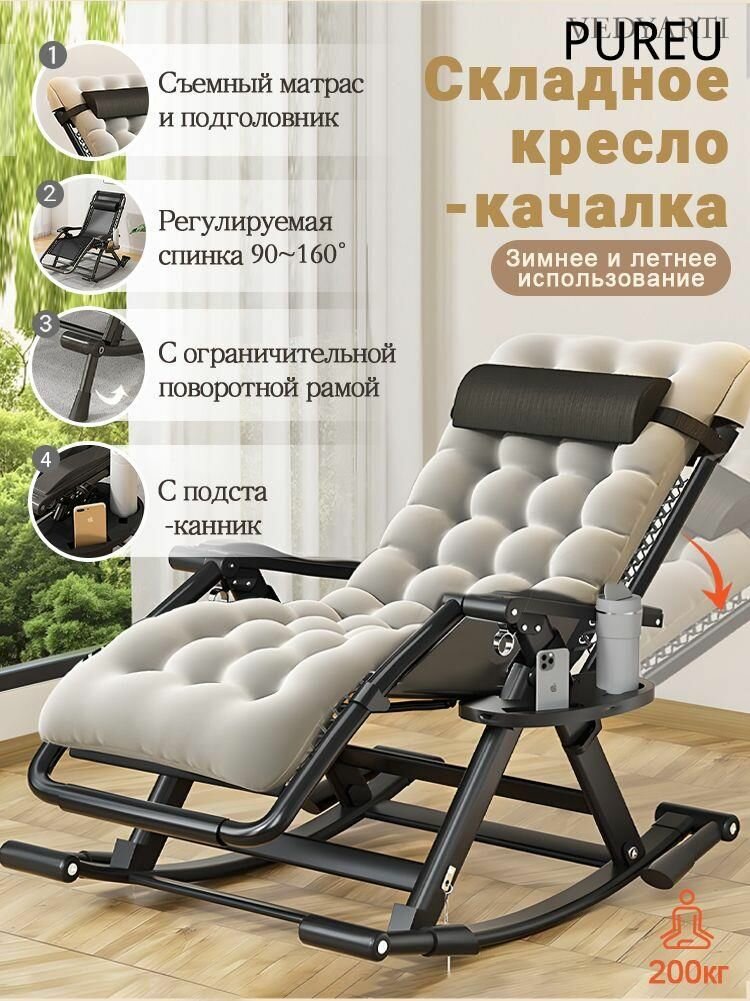 Отзывы на Кресло-качалка PUREU, обивка искусственная кожа, каркас металл, складное, серое
