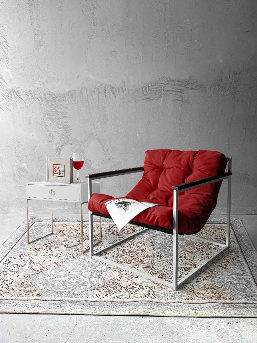 Кресло лофт мягкое удобное для отдыха, уличное, на балкон, на веранду, во двор, в баню, Комфи ++ велюр красный информация:
