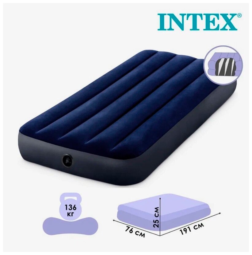 Надувная кровать (матрас Intex) Classic Downy Bed, (Cot Size), 76х191х25см информация: