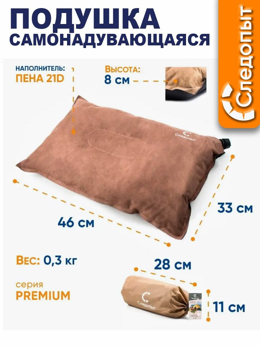 Подушка Следопыт Premium, самонадувающаяся, анатомическая, нескользящая, коричневый информация: