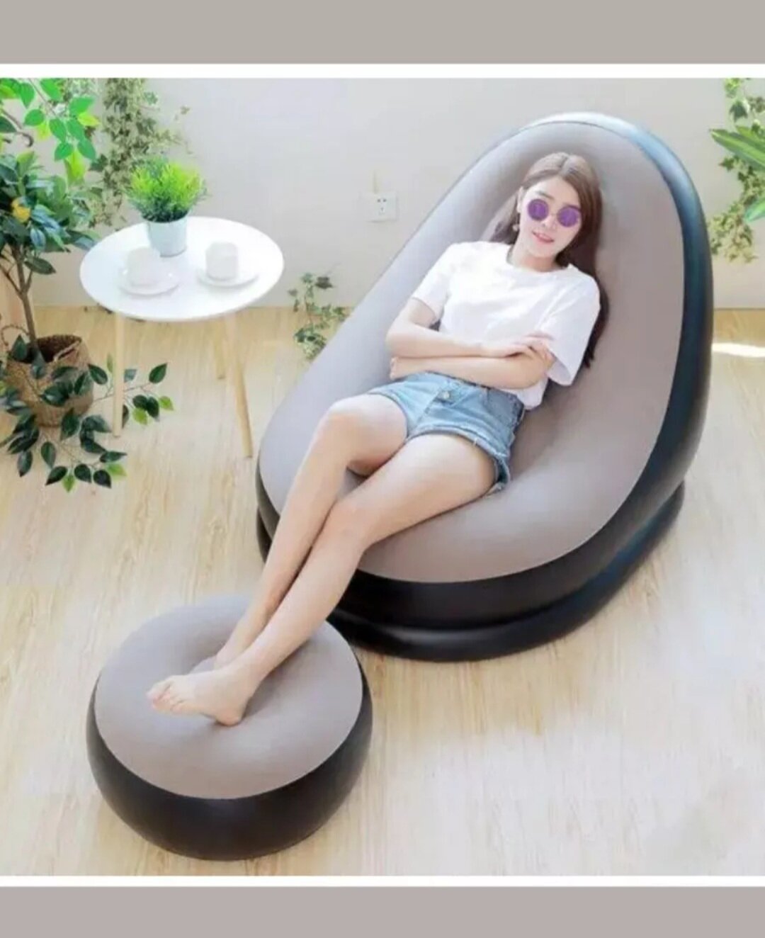 10 цен на Надувное кресло Ultra Lounge с пуфиком (68564), 137х102 см, серый/черный с насосом