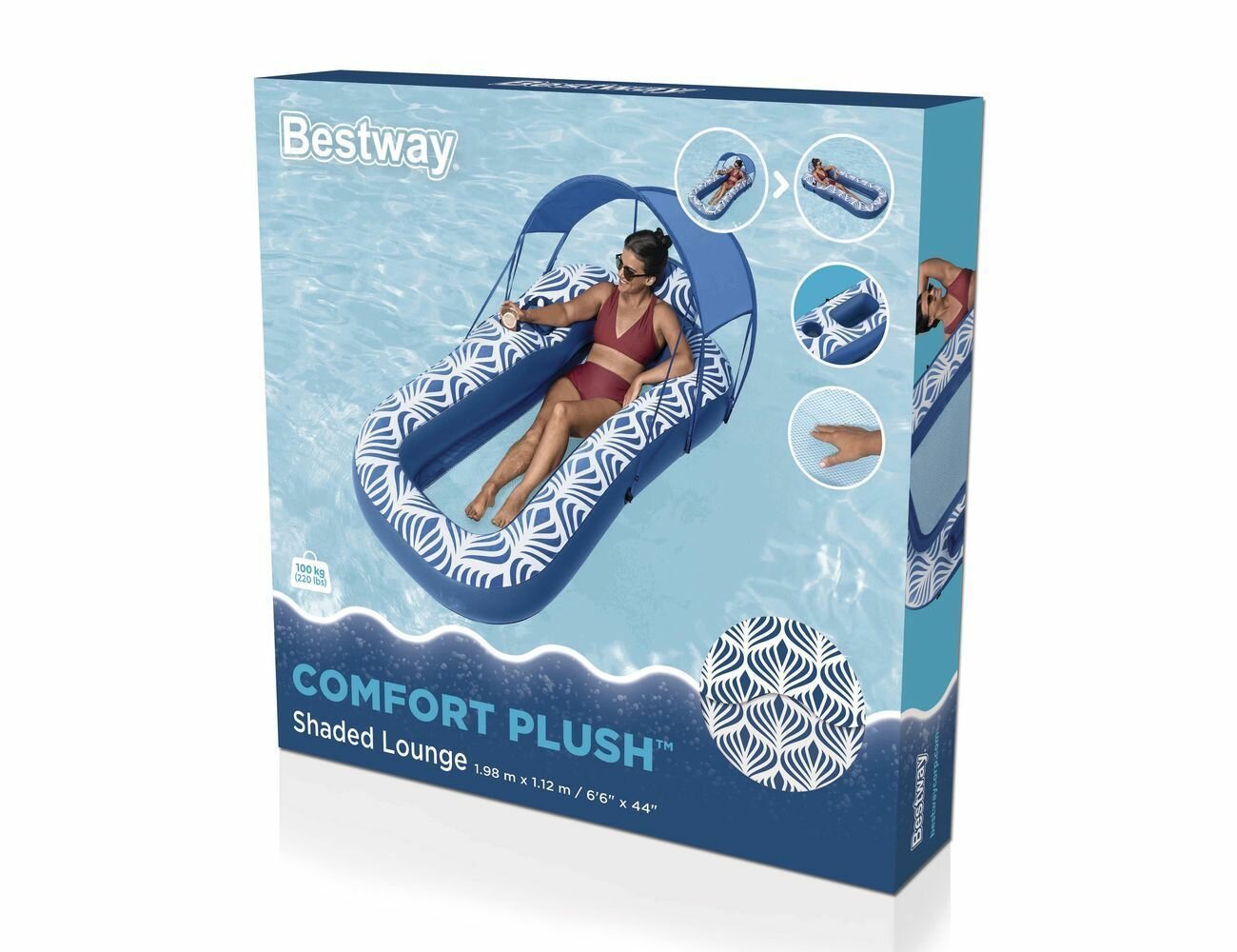 Надувной матрас-шезлонг для плавания 190*104*38 см с навесом и сеткой, до 100 кг, BestWay 43732 информация:
