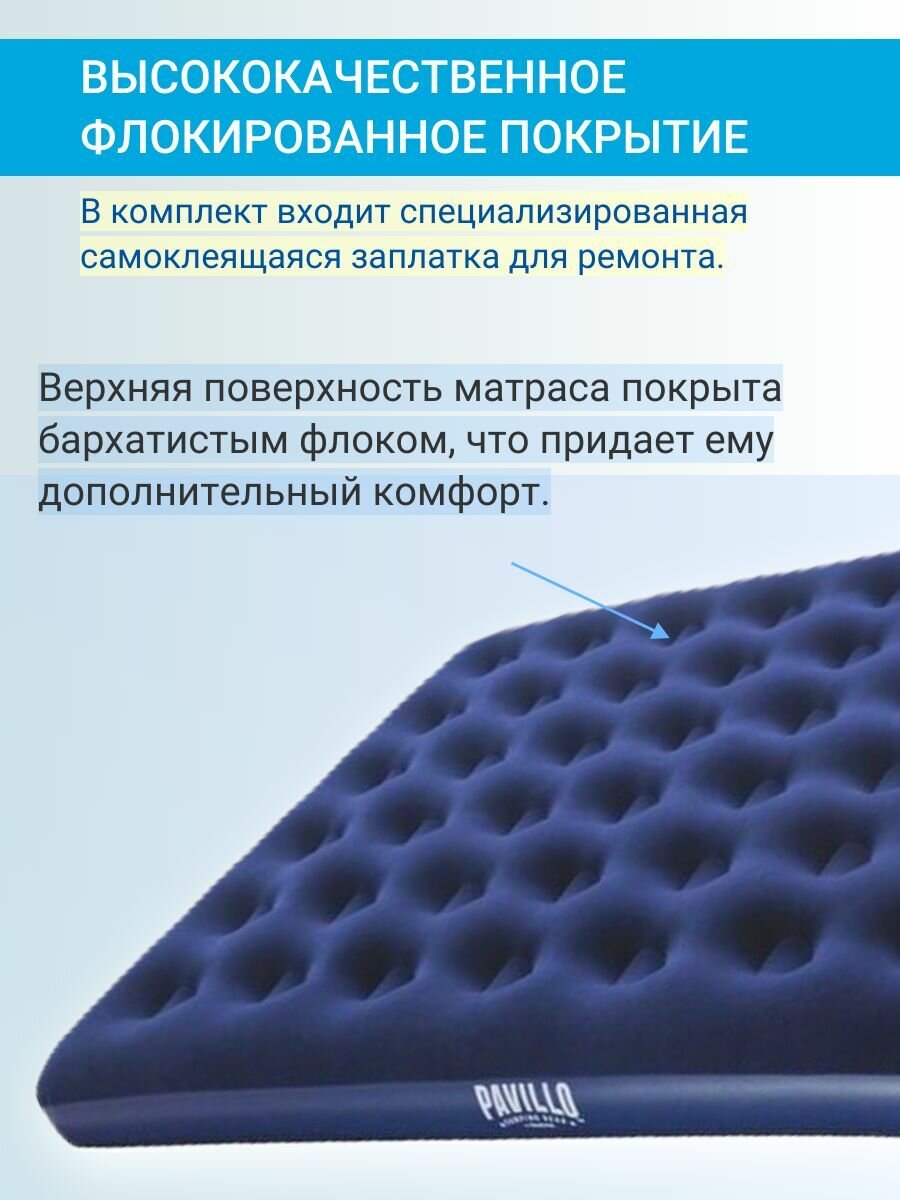 Надувной матрас Bestway 67003, темно-синяя флокированная поверхность, 203 см x 152 см x 22 см информация: