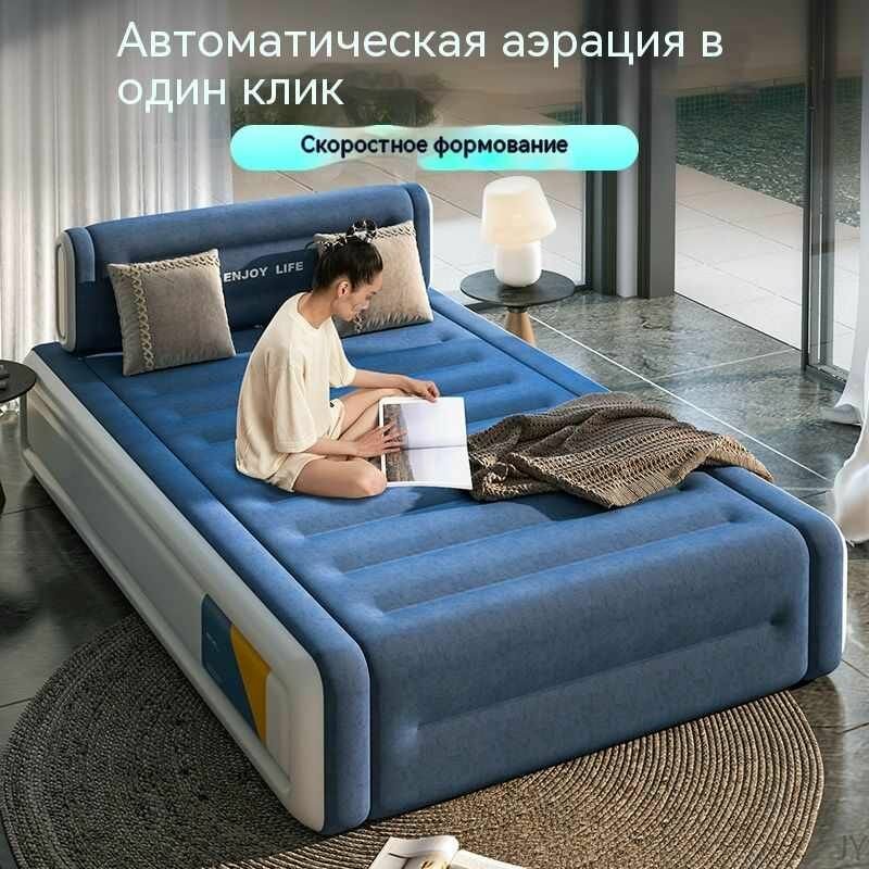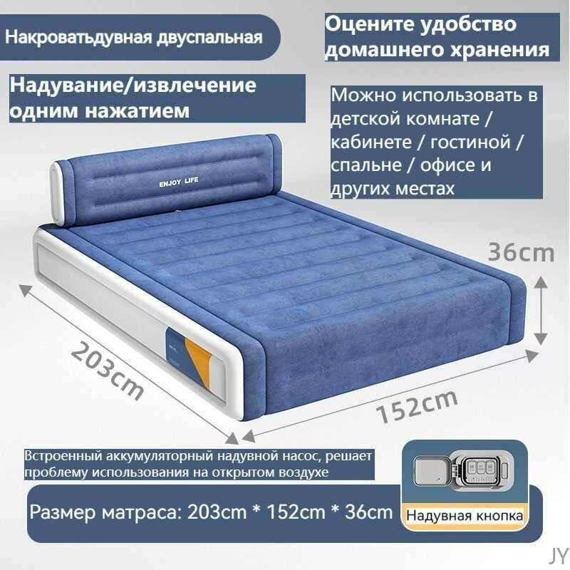 Отзывы на Надувная двуспальная кровать, встроенный насос, флокированное покрытие, 203 x 152 x 36 см