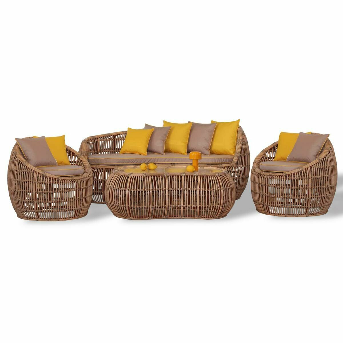 10 цен на Комплект мебели Malacca Лучиано, искусственный ротанг/металл/стекло, диван, кресла, стол