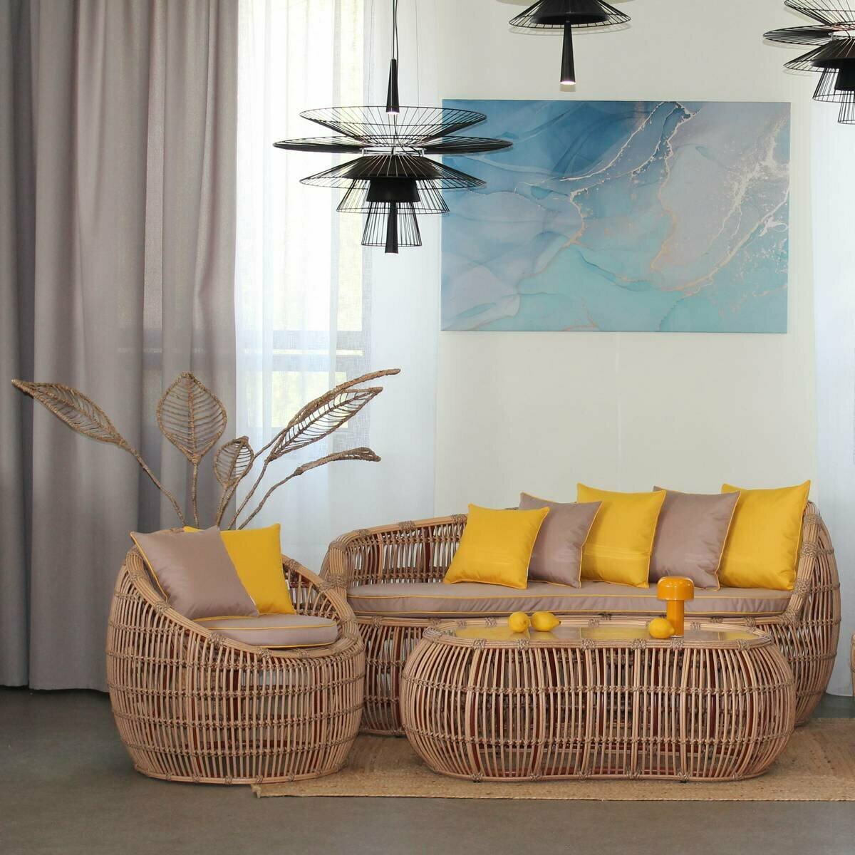 Комплект мебели Malacca Лучиано, искусственный ротанг/металл/стекло, диван, кресла, стол информация: