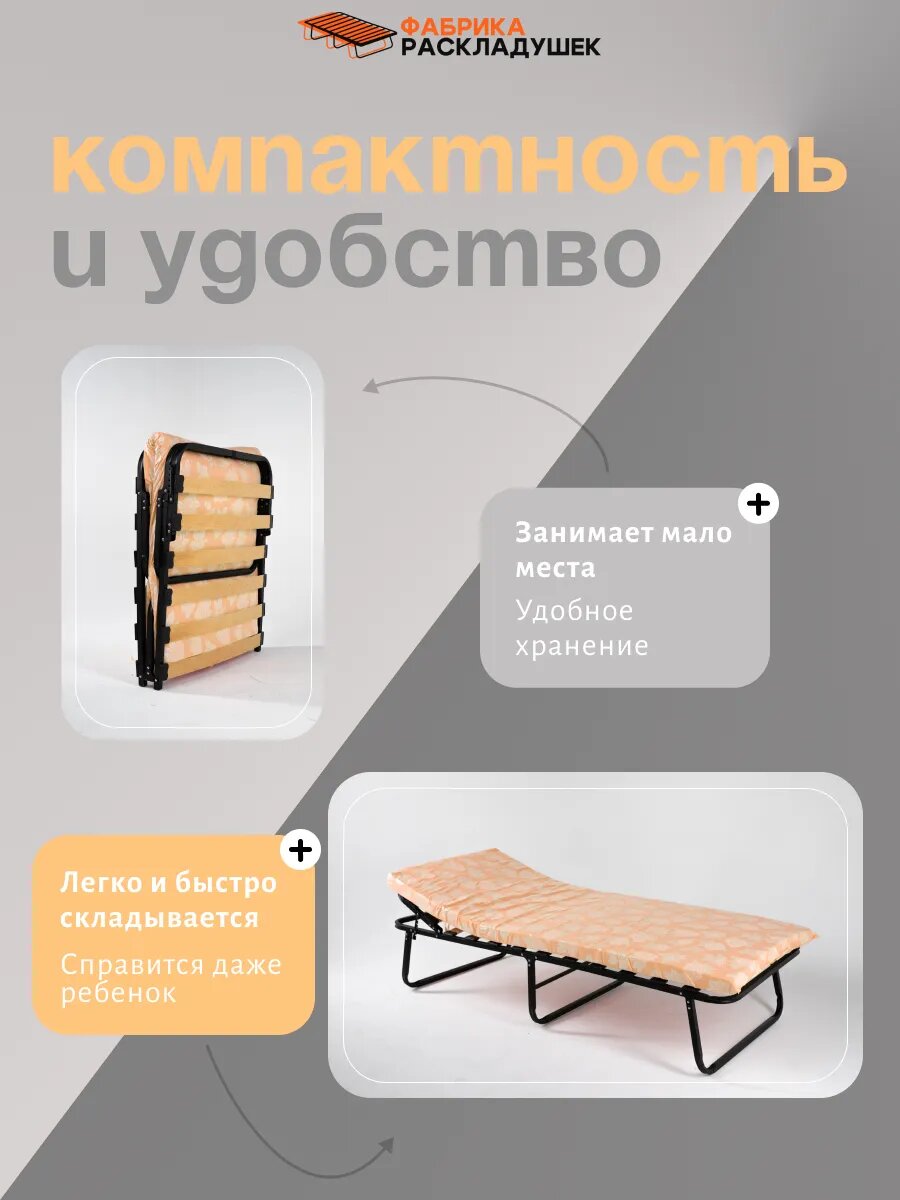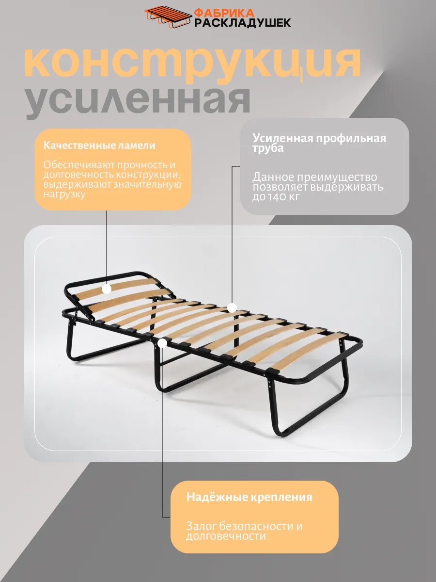 Раскладушка Фабрика-Раскладушек "Гера+" 70, с матрасом, сталь, 190x70 см, черная информация:
