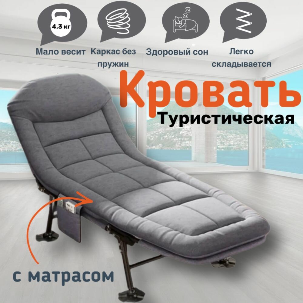 Раскладушка с матрасом взрослая, evindel,200*65*32cm, Грузоподъемность 180 кг