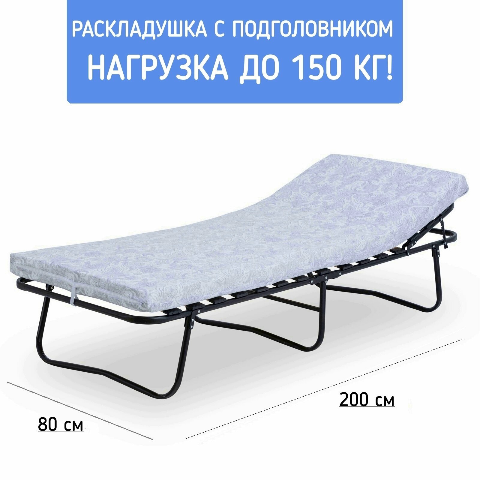 Раскладушка с матрасом взрослая, evindel,200*65*32cm, Грузоподъемность 180 кг