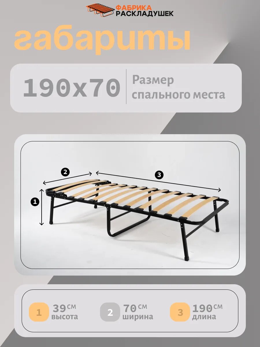 Раскладушка Фабрика-Раскладушек Гера Про 70, каркас сталь, нагрузка до 140кг, матрас в комплекте информация: