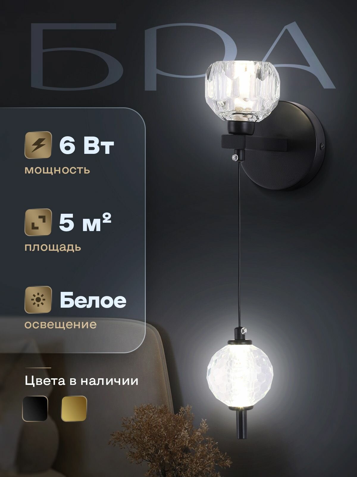 Бра настенные светодиодные, светильник настенный ЭлисСвет 20132 ZS/1W BK информация: