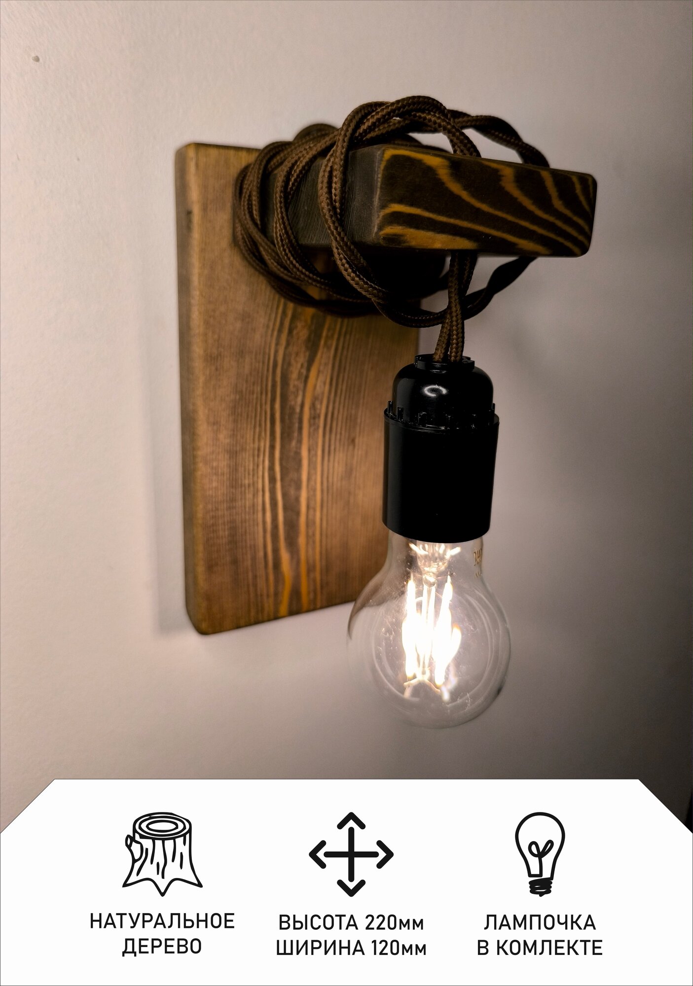Светильник настенный, лиственница, IP30, E27, стиль лофт, эко, натуральные материалы информация: