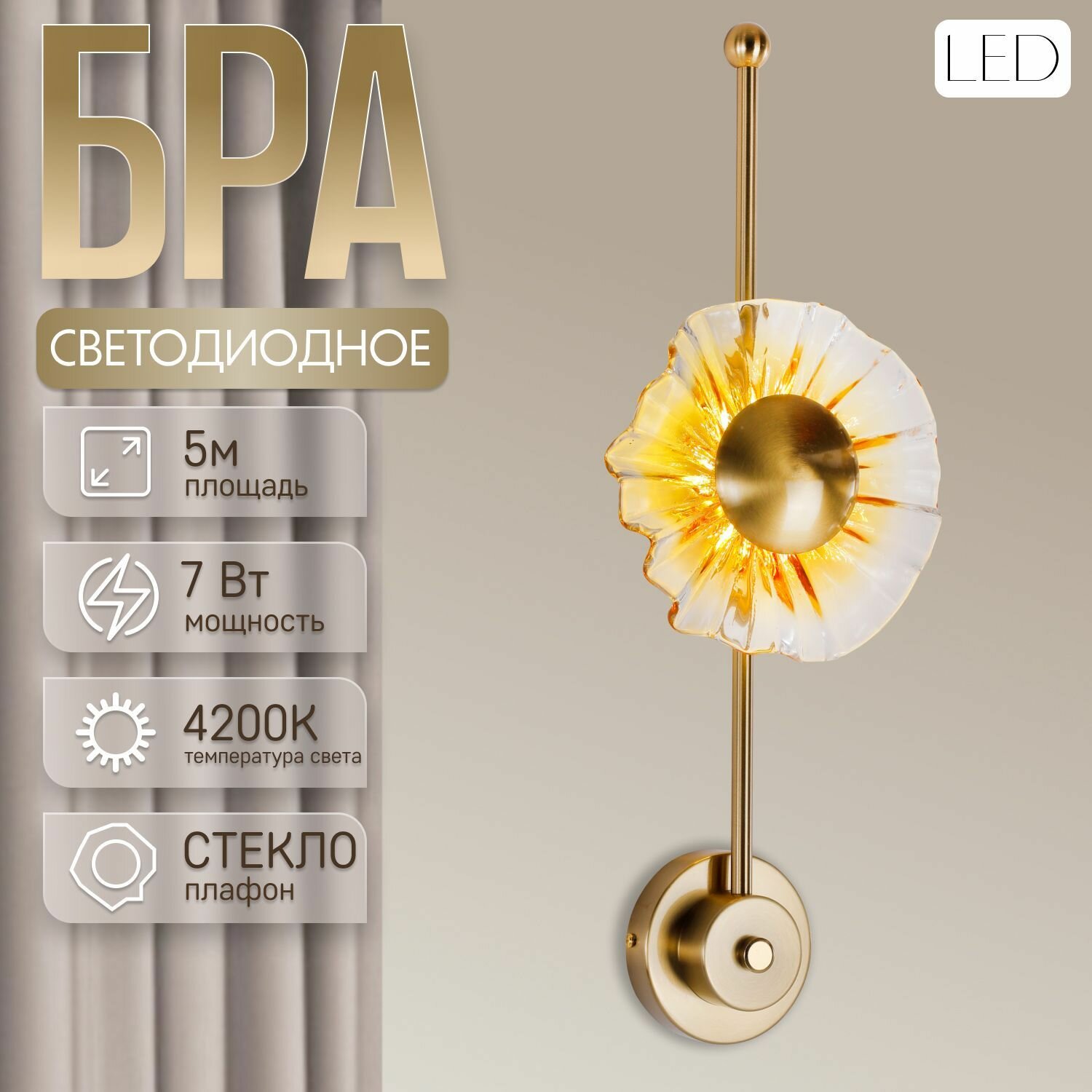 Бра настенные, светильник настенный , Бра светодиодные ЭлисСвет 20155 -1W AB информация: