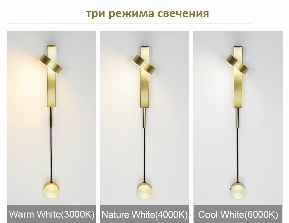 Светильник настенный, бра настенные, 6 Вт, 43 см, трехцветный меняющийся свет