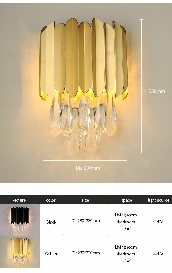 Отзывы на Бра настенные хрустальные, светильник настенный ЭлисСвет 1007BG/2W GD