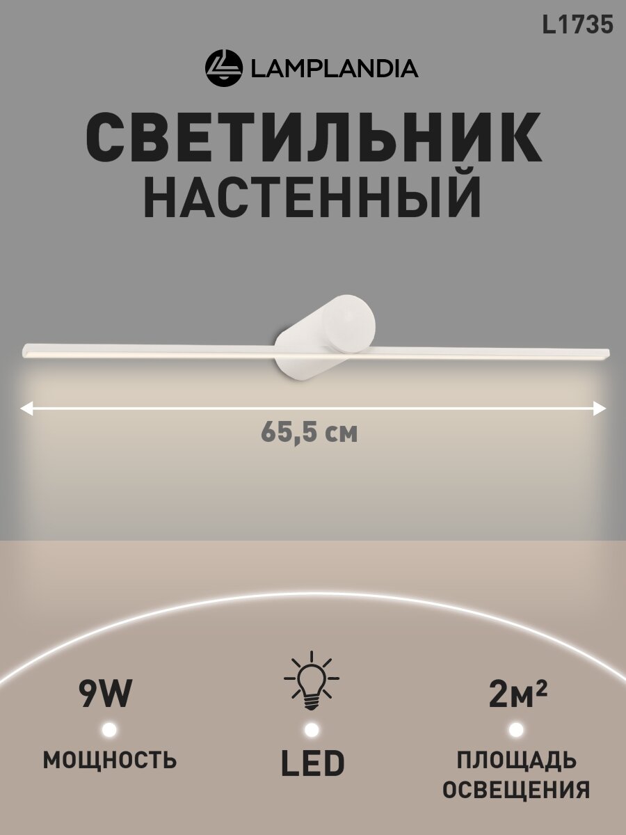 Бра светодиодный Lamplandia L1735 PALO WHITE, SMD LED 9W информация: