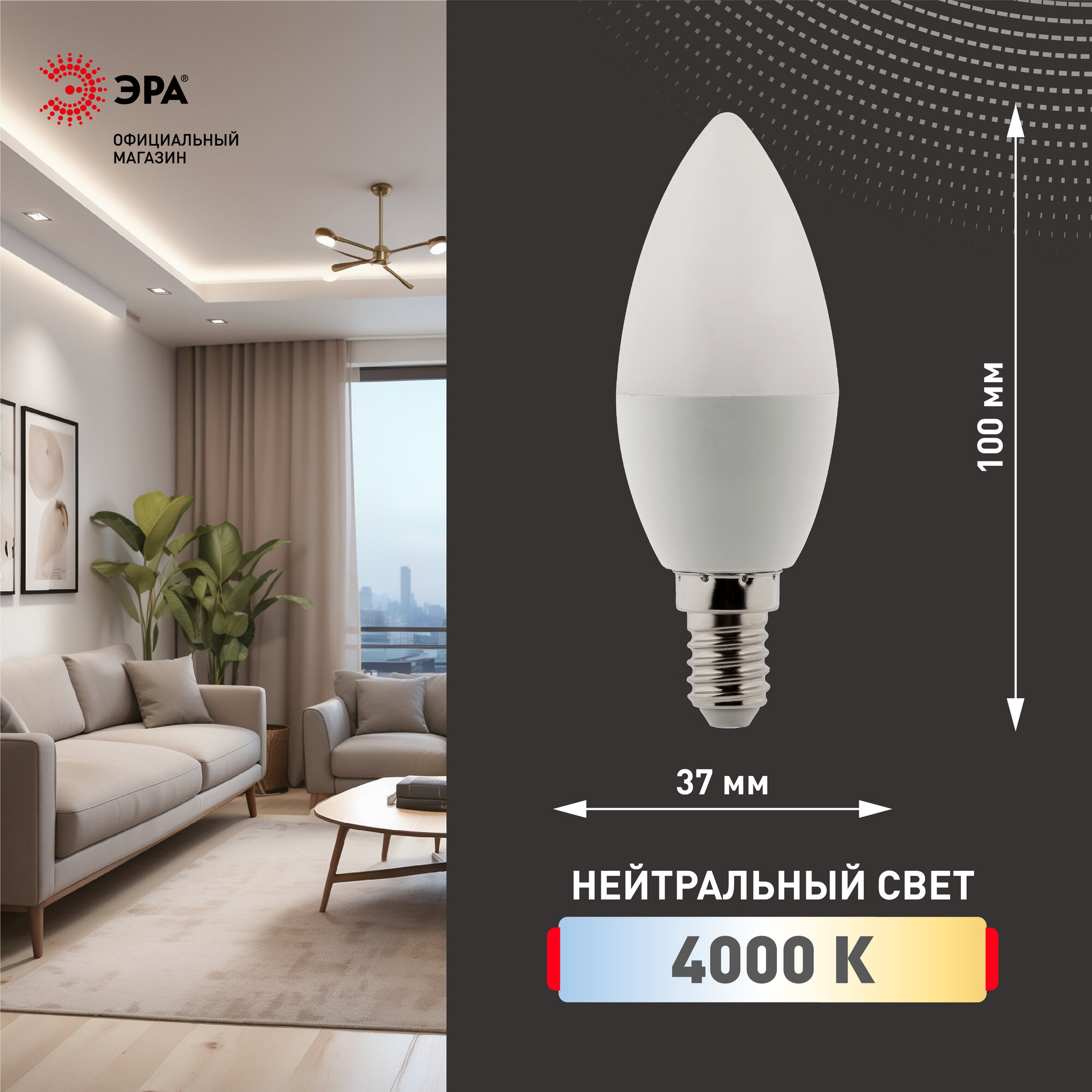 Отзывы на Лампочка светодиодная ЭРА LED B35-10W-840-E14 R 4000K свеча 10 Вт
