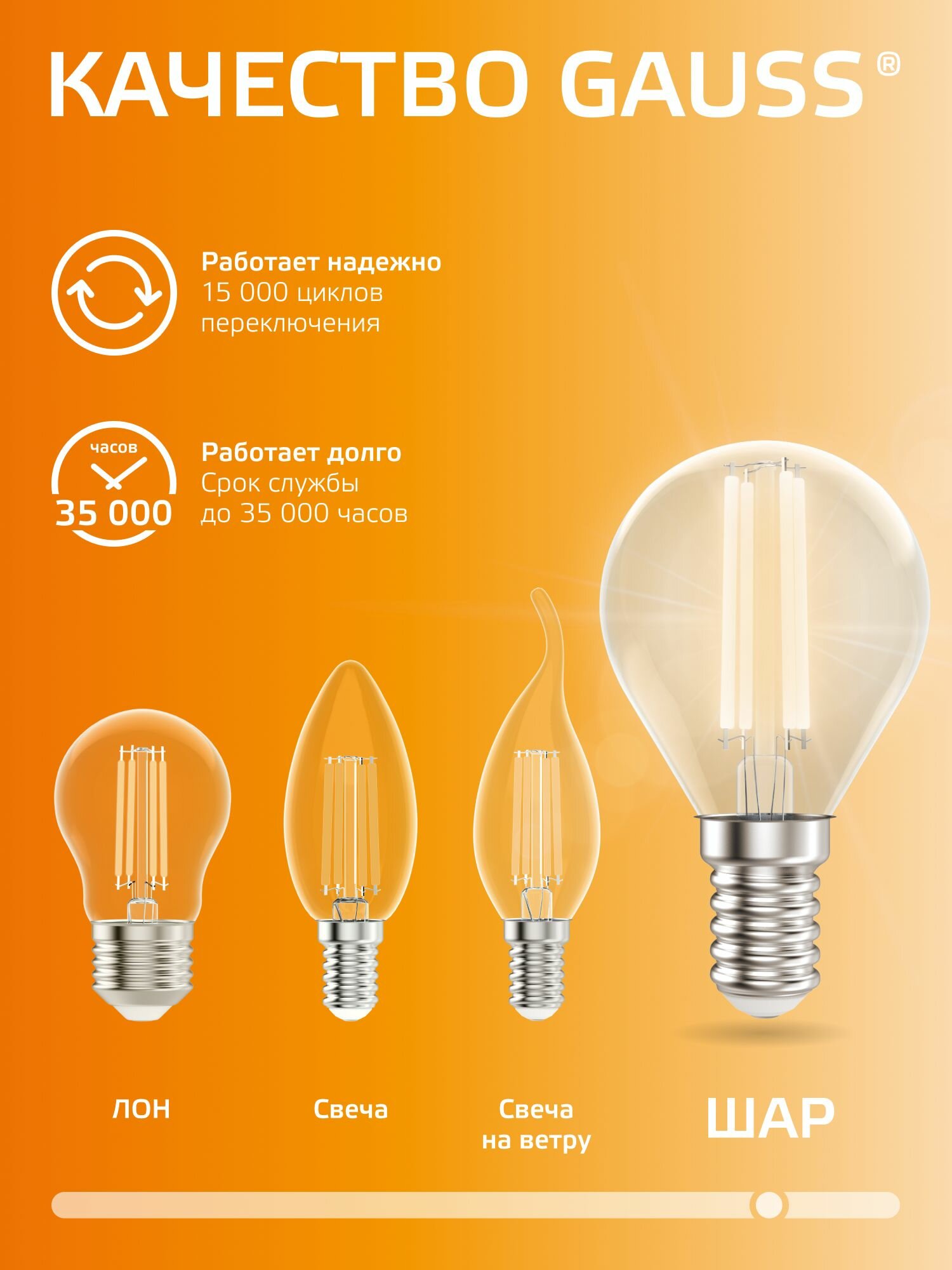 Отзывы на Лампочка светодиодная Е14 Шар 7W Комплект 3 шт. теплый свет 2700К Gauss Filament