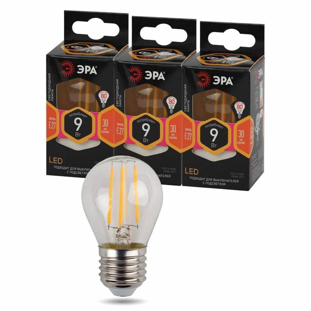 Отзывы на Набор светодиодных лампочек ЭРА F-LED P45-9w-827-E27 2700K шар 9 Вт 3 штуки