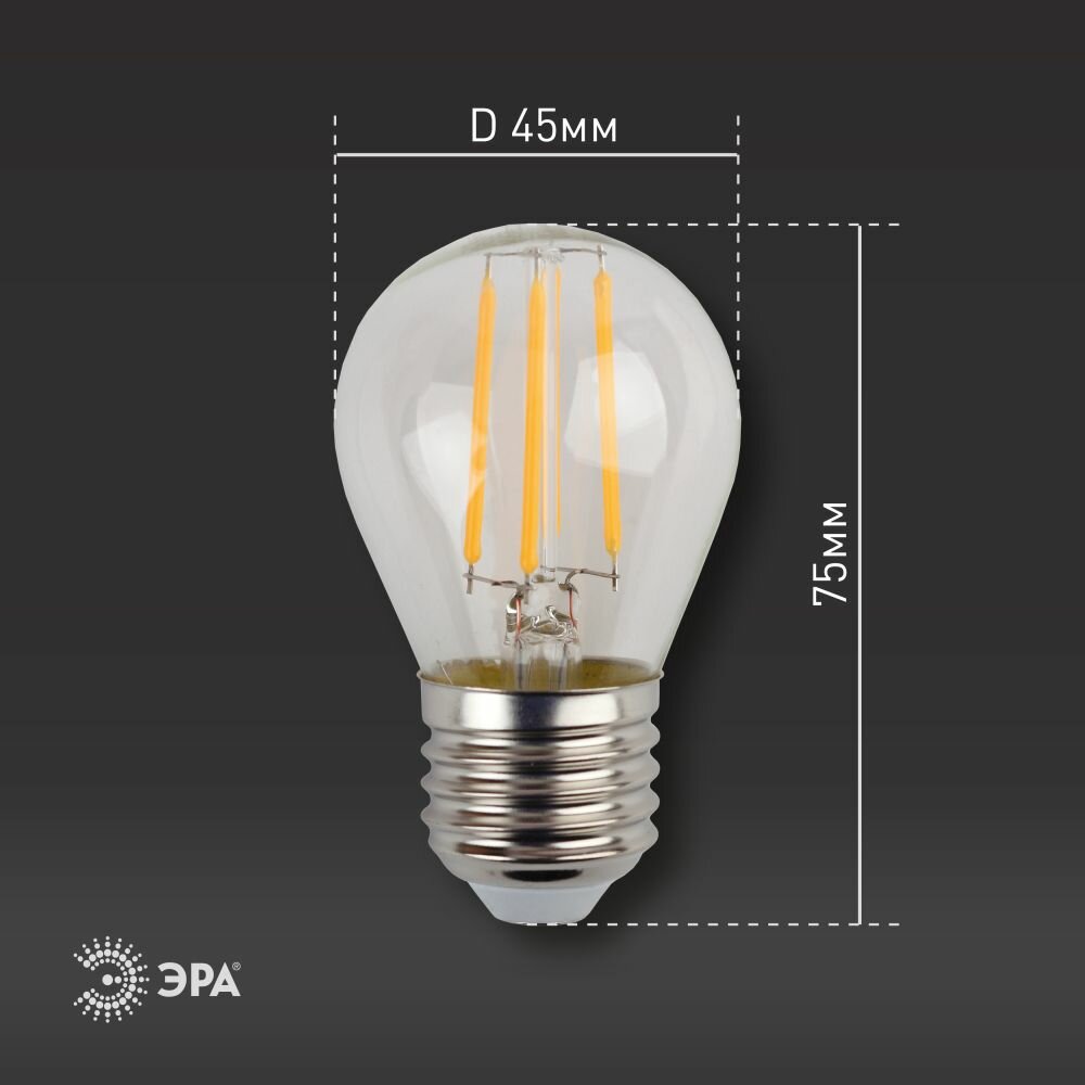 Набор светодиодных лампочек ЭРА F-LED P45-9w-840-E27 frost 4000K филаментная шар 9 Вт 10 штук 897 ₽