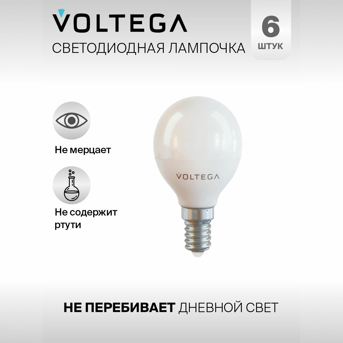 Отзывы на Лампочка светодиодная E14 форма шар 7W нейтральный белый свет Voltega Simple Globe 4000K упаковка 6 шт.