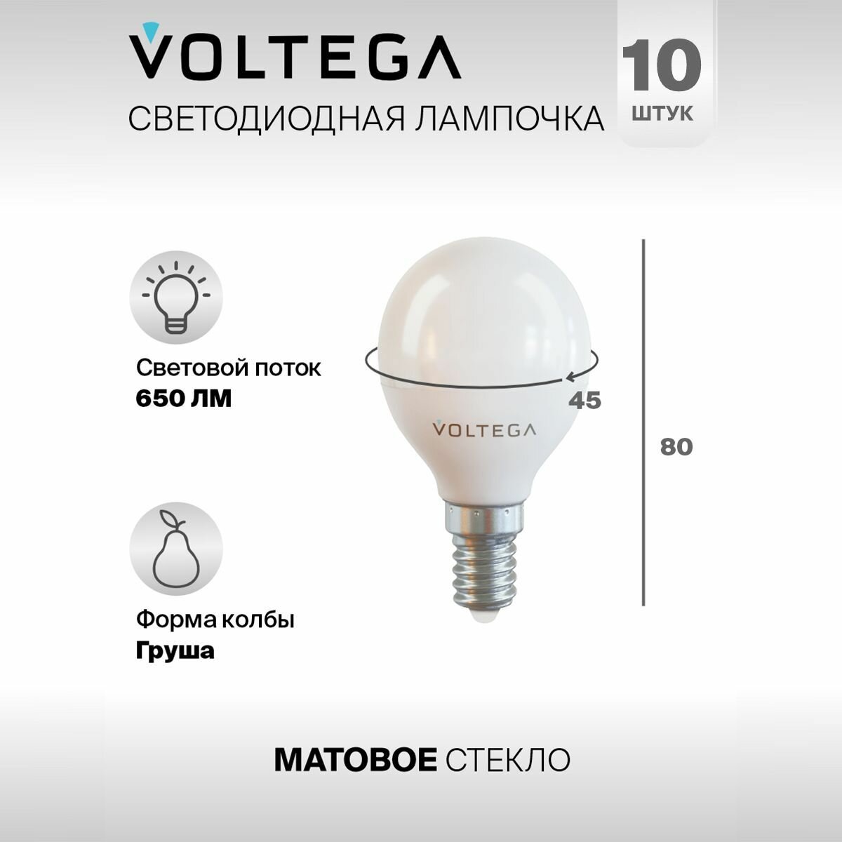 Лампочка светодиодная E14 форма шар 7W нейтральный белый Voltega Simple Globe 4000K упаковка 10 штук информация: