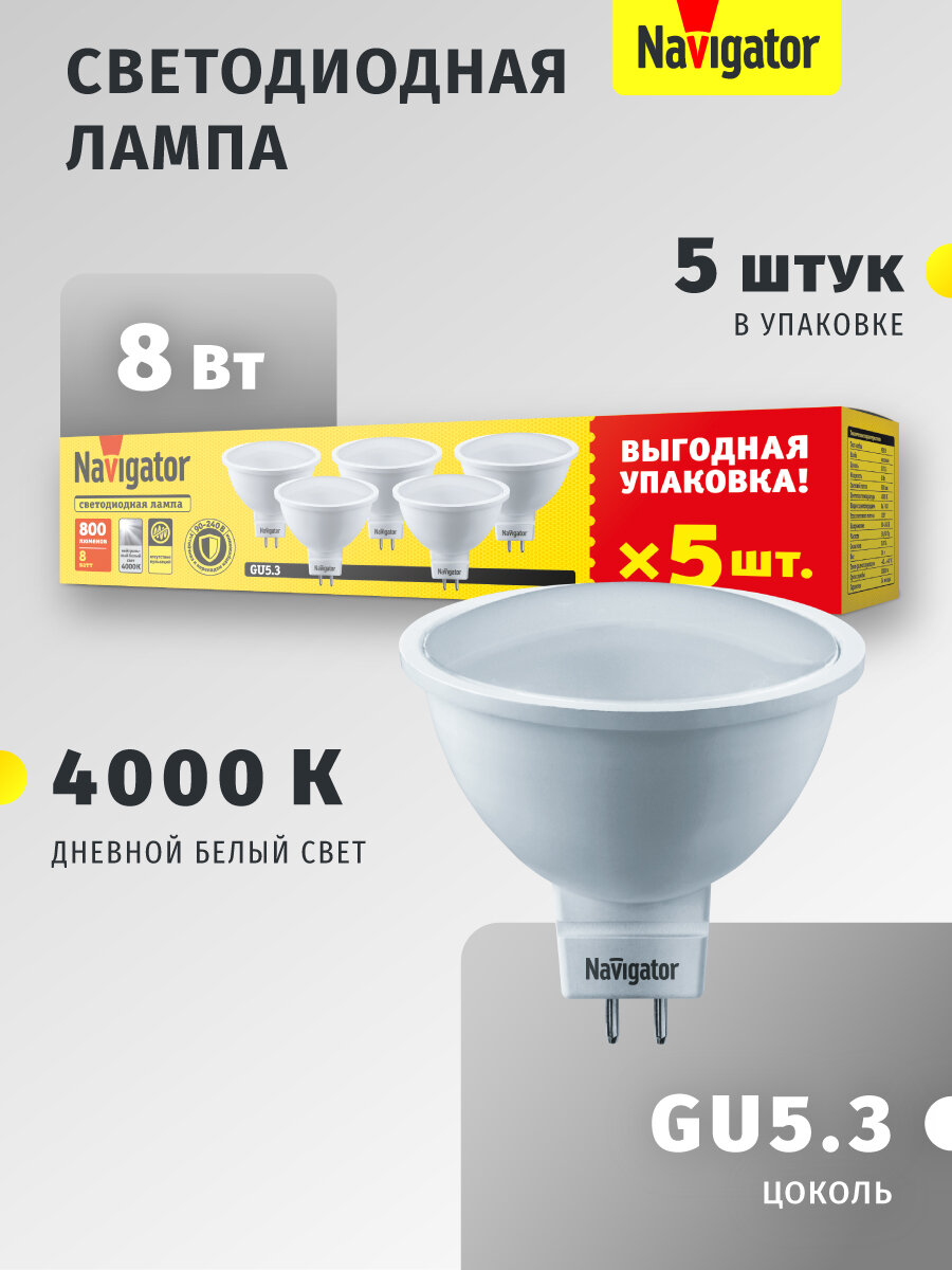 Отзывы на Лампа светодиодная Navigator 95 325 NLL-MR16-8-230-4K-GU5.3-PACK5, уп. 5 шт